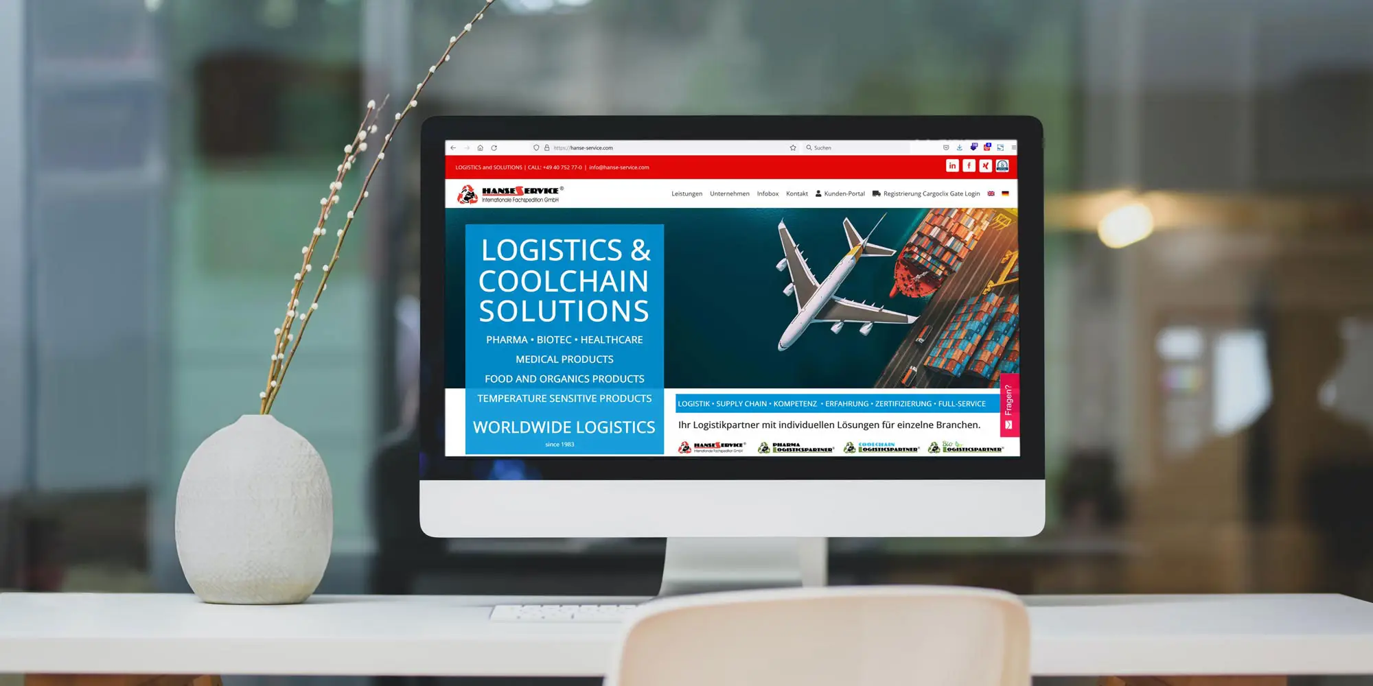 Zur Gruppe der Hanse Service gehören auch die Pharmalogisticspartner GmbH und die Biologisticspartner, für die wir ebenfalls die Webseiten erstellt haben.